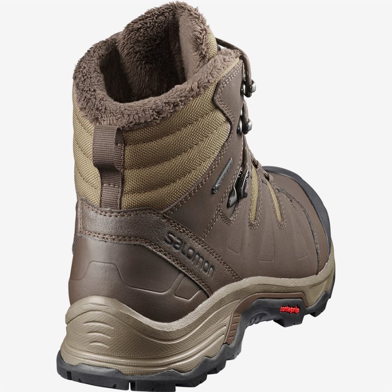 To tackle the colder months, the QUEST WINTER GTX offers the full Salomon winter package: great fit, insulated warmth, GORE-TEX waterproofing and a sole with serious grip. We’ve taken time-tested features from our best selling Quest backpacking line and adapted them to this winter boot that's ideal for a snow-covered trail or a slippery sidewalk.